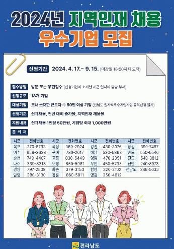 지역인재 채용 우수기업 지원사업은 전남에 있는 고등학교 또는 대학을 졸업한 지역인재를 채용한 기업을 선정해 지원하는 사업이다.