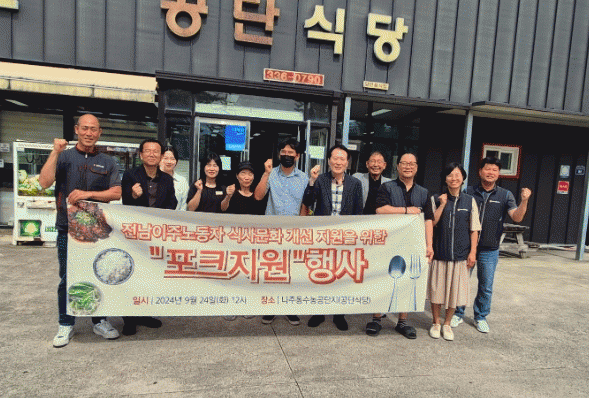 전라남도 나주시는 전남도와 함께 동수·오량 농공단지 인근 식당에서 전남도 내 이주노동자를 대상으로 한 포크 나눔 행사를 가졌다고 25일 밝혔다.