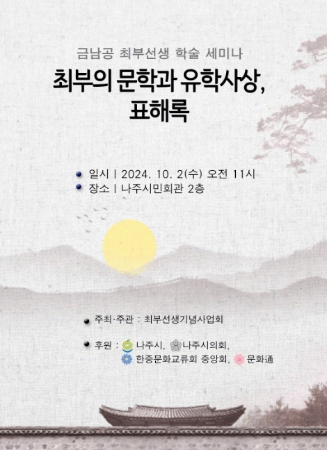 이번 학술세미나는 나주 출신 ‘조선 최고의 선비’로 일컬어지는 ‘표해록’의 저자, 금남공 최부 선생을 선양 및 현창하고 선생의 정신문화를 계승하기 위해 열리며 나주시가 지원한다.