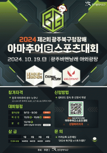 26일 북구에 따르면 오는 10월 19일 광주비엔날레 광장에서 ‘광주 북구청장배 전국 아마추어 e스포츠 대회’가 개최된다.