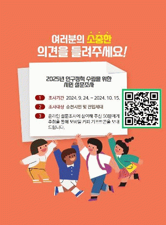 이번 설문조사는 저출생 인구감소 위기에 대응하기 위해 인구문제에 대한 인식과 인구정책에 대한 시민 수요도를 조사한다.