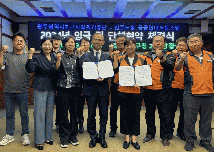 이날 협약식에는 공단 나기백 이사장과 박미경 공공연대 광주본부장을 비롯한 양측 교섭위원 10명이 참석해 노사 간 화합을 다졌다.