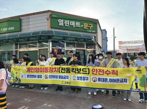 현재 개인형 이동장치(전동킥보드)에 대한 관련법이 제정되지 않아 단속 등 제재가 어려운 상황이지만, 군에서는 안전사고 예방을 위한 교육과 지원을 위해 조례 제정을 추진하고 있다.