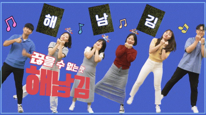 해남김 노래는 땅끝마을 해남김을 주제로,“맛있는 해남김”이 반복되는 중독성있는 가사와 한번 들으면 누구나 따라 부를 수 있을 정도로 쉬운 멜로디가 매력적이다.