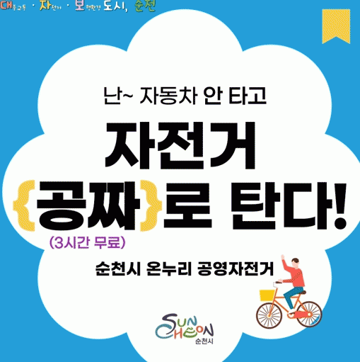 온누리 자전거 이용방법은 새로운 온누리 자전거 앱인 ‘순천시 공영자전거 온누리’앱을 다운로드해 스마트폰에 설치한 다음, 앱을 이용해 자전거 뒷바퀴에 부착된 스마트 잠금장치의 QR코드를 스캔하면 이용 가능하다.