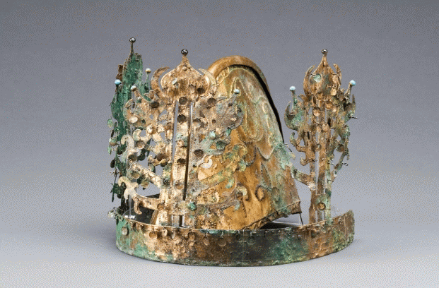 높이 25.5cm로 나뭇가지 모양 장식 3개가 붙은 외관과 반원형 동판 2장을 붙인 내관으로 구성했으며 선조들의 정교한 금세공 기술을 엿볼 수 있다.