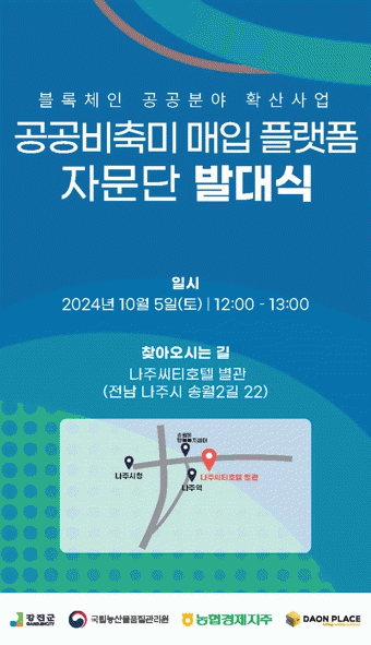 자문단은 블록체인 기술을 활용한 공공비축미 매입 플랫폼의 구축과 운영에 대한 자문을 제공하며, 체계적인 지원을 통한 전국적인 확산을 목표로 하고 있다.