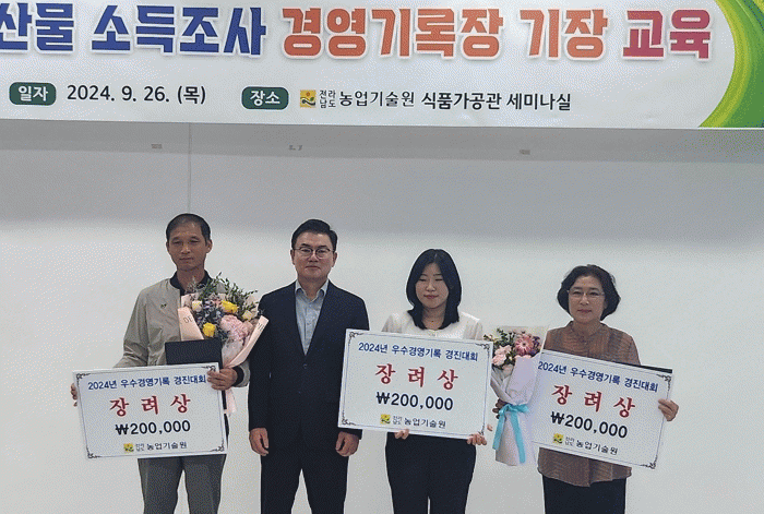 장려상을 받은 도포면 기은숙 농업인은 “경영기록장을 꼼꼼히 쓰고 매년 농사 지을 때마다 비교 분석하고 있다”라고 전했다.