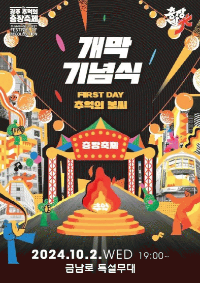 이날 펼쳐지는 개막기념식의 주제는 ‘추억의 불씨’로 오후 7시부터 9시30분까지 5·18민주화운동기록관 앞 메인 무대에서 열린다. 시민들이 기억하는 시각, 청각, 후각 등 다양한 감각들을 다양한 공연으로 한데 모아 선보이며, 열정의 불씨를 다시 한 번 끄집어 내 축제의 시작을 알린다.