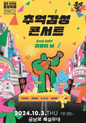 임택 동구청장은 “가을의 시작을 알리는 10월, 콘서트를 통해 잠자고 있던 감성을 깨워보는 시간을 가져보시길 바란다”면서 “가을밤, 충장축제에서 또 하나의 추억을 채워가길 기대한다”고 말했다.
