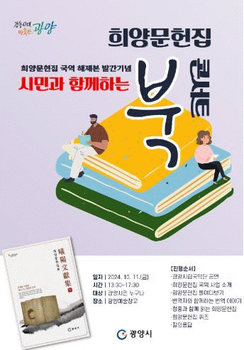 일제강점기였던 1938년 광양향교에서 간행한 희양문헌집은 기존에 한문으로 쓰여있었으나 국역 해제 사업을 통해 한글로 번역됐으며 ‘희양문헌집 上·下’권으로 재탄생하게 됐다.