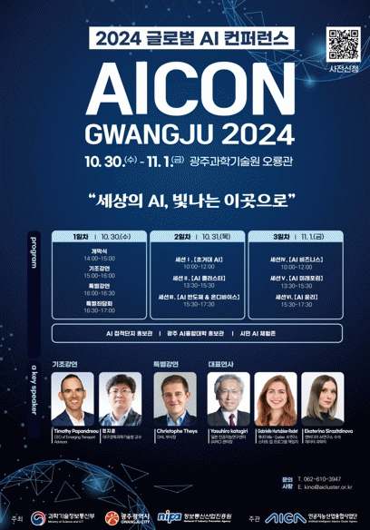 광주광역시는 오는 10월30일부터 11월1일까지 광주과학기술원(GIST) 오룡관에서 ‘제4회 아이콘(AICON) 광주 2024’를 개최한다.