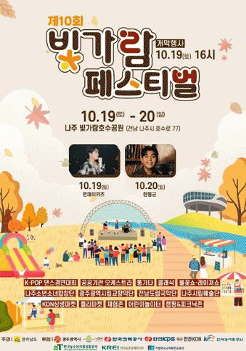 첫날인 19일 개막식에 앞서 이전 공공기관 오케스트라 공연, 청소년 케이-팝(K-POP) 댄스대회, 나주시소년소녀합창단 공연 등 다채로운 공연이 펼쳐진다.