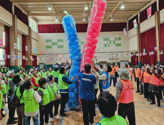 2부에서는 어르신들과의 준비운동을 시작으로 ‘지구를 옮겨라’, ‘풍선기둥 쌓기’, ‘돼지를 몰아라’ 등 각종 체육 프로그램이 진행됐다.