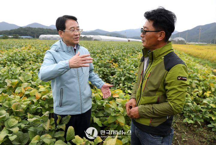 강진원 군수는 벼 대체 소득작물로 집중 육성 중인 논콩 재배의 현황을 파악하고 재배 농가의 어려움을 살피기 위해 논콩 전문 단지 회원들과 만나 소통했다.