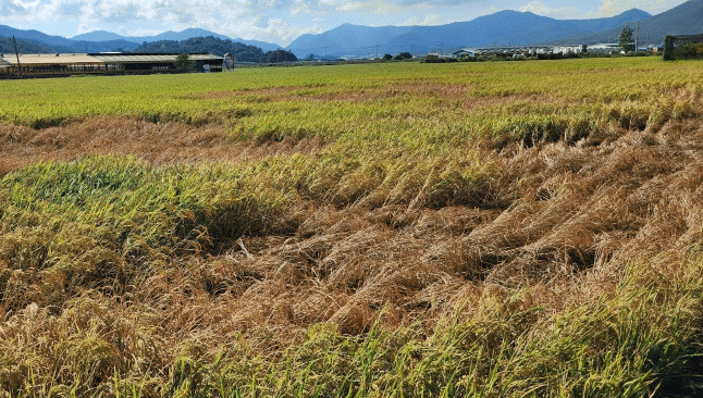 특히 아직 피해 벼를 수확하지 않은 농가는 반드시 수확하기 전에 읍면동 행정복지센터에 신고하고 피해 농지 사진 촬영 등 자료를 확보한 후에 수확해야 한다.