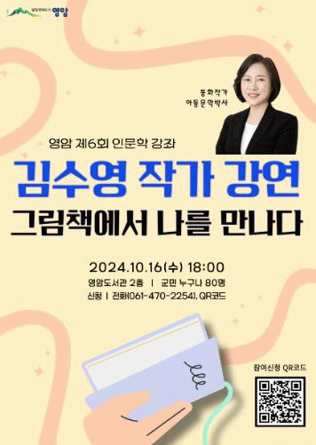 강좌 일까지 영암도서관에 전화하거나 현장 접수로 수강 신청할 수 있고, 자세한 강좌 안내는 영암군홈페이지 공지사항에서 볼 수 있다.