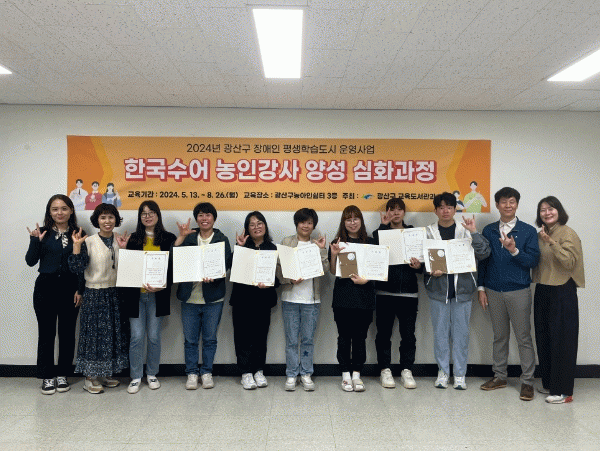 광산구 관계자는 “지역사회에서 수어교육과 장애인식개선 교육에 관한 관심이 끊이질 않았다”며 “다양한 기관에서 수어 강사로서의 사회활동을 계속 지원하고, 비장애인과 장애인이 함께하는 사회를 만드는데 이바지할 것”이라고 전했다