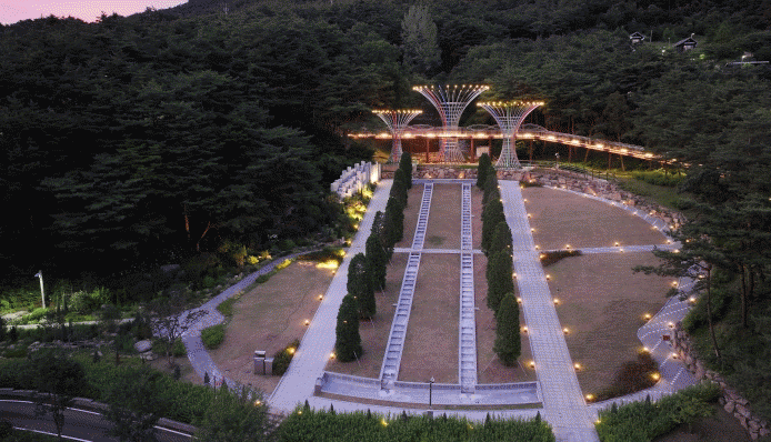 하늘정원은 기존 경사 지형 및 시설물을 활용해 하늘을 향해 열린 경관을 연출하고 있다.
