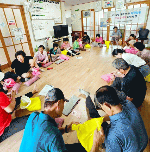 건강꾸러미에는 체험활동에 필요한 준비물이 모두 담겨 있어 어르신들은 쉽고 재미있게 완제품을 만들 수 있었다.