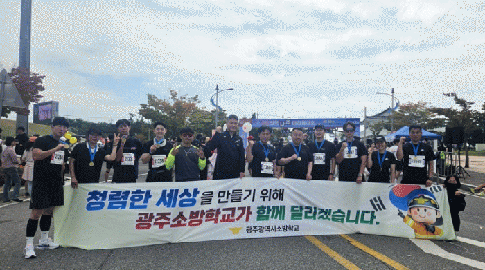 이날 마라톤대회에는 광주소방학교 교직원 20명이 참가해 광주, 전남, 전북 등 전국에서 모인 참가자들을 대상으로 청렴 문구와 함께 청렴한 소방문화를 홍보하고 반부패·청렴 실천 의지를 다지며 시민들과 공유했다.