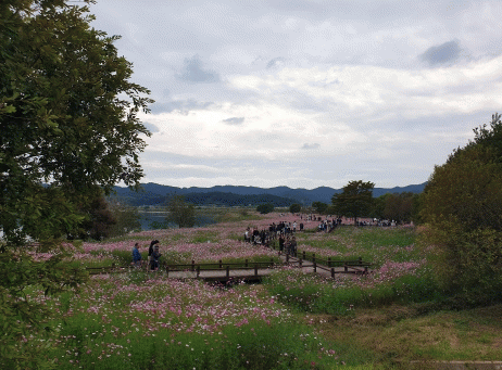 해마다 이곳을 찾는다는 관광객은“올해는 무더위와 기상이변 때문인지 다른 지역들은 꽃이 많이 피지 않아서 실망했는데 여기는 기대 이상으로 코스모스가 만발했고 특히 코스모스와 함께 영산강과 산이 어우러져 어릴 적 고향 생각이 나서 너무 좋아하는 장소”라며 만족감을 드러냈다.