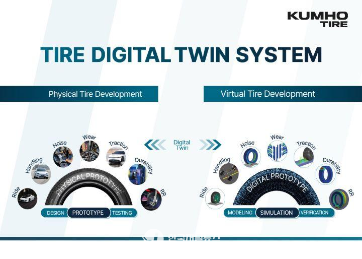 타이어는 회전저항, 제동, 마모, 승차감, 소음진동 등의 주행 성능을 만족시키기 위해 제품 컴파운드, 패턴, 구조, 형상 등의 설계인자들을 최적으로 디자인하는 기술이 매우 중요하다. 금호타이어는 타이어 디지털 트윈 기술을 통해 전반적인 제품 개발 프로세스의 혁신을 유도함으로써 제품 개발 기간 단축, 제품 성능 향상, 개발 비용 절감 등에 획기적으로 기여할 것으로 기대된다.