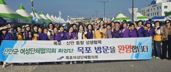 이날 만남은 목포시 여성단체협의회 초청에 따른 신안군 여성단체협의회 회장단(20명)의 목포항구축제장 방문으로, 이날 두 단체는 신안군 특산품인 새우젓 2.5kg 100통을 판매하며 목포․신안 상생협력의 의지를 다졌다.