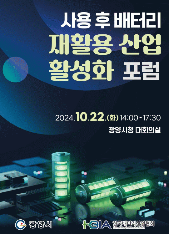 한국배터리산업협회와 광양시가 공동 개최하는 이번 포럼에서는 산·학·연 관계자 100여 명이 참석한 가운데 이차전지 재활용 산업의 활성화를 위한 강연과 토론이 진행된다.