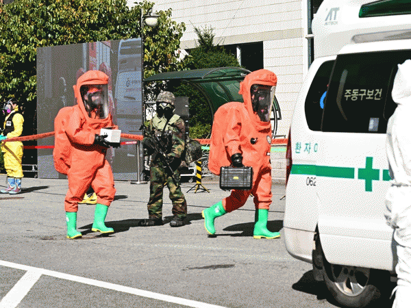 동구보건소가 주관한 이번 훈련은 생물테러 발생 상황에 대비, 신속한 대응과 유관기관 간 협력체계 강화와 대응요원들의 현장 대응 능력 강화를 위해 마련됐다.