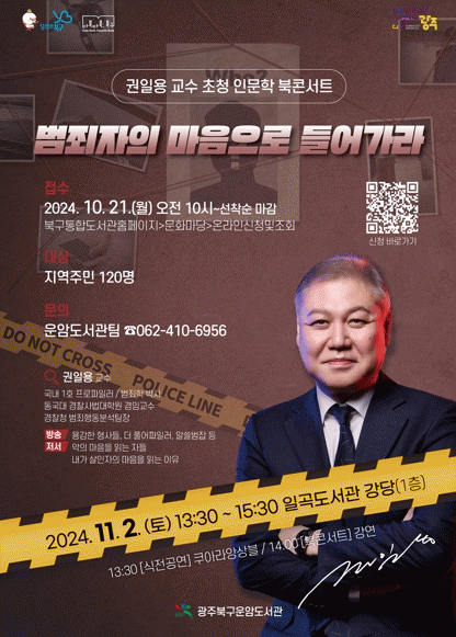 20일 북구에 따르면 ‘인문 주간’을 맞아 오는 11월 2일 오후 2시 일곡도서관에서 권일용 교수의 ‘인문학 북콘서트’가 개최된다.