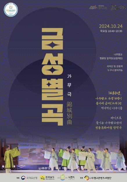 전라남도 나주시는 오는 24일 오후 6시 40분부터 나주 원도심에 위치한 나주향교 명륜당 앞마당에서 ‘금성별곡’ 공연을 선보인다고 21일 밝혔다.