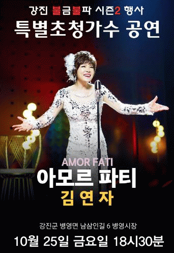 이번 공연은 강진 불금불파 시즌2의 마지막 날을 장식하는 하이라이트로, 전국적으로 사랑받는 곡 ‘아모르 파티’를 포함한 다채로운 무대가 준비될 예정이다.