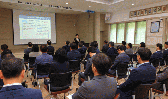 군은 이날 전문 강사를 초빙해 ‘세상과 소통하는 품격 있는 나의 역할’이란 주제로 관리자에 대한 성 인지 감수성의 필요성과 성평등한 조직문화를 만들기 위한 실천 방안 등을 사례 중심으로 교육했다.