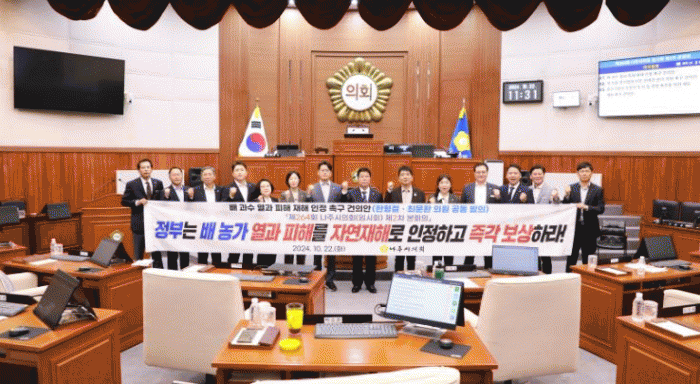 나주시의회는 건의안을 통해 ▲정부는 지자체와 긴밀한 협조를 통해 배 농가 열과 피해를 자연재해로 인정하고 즉각 보상할 것과 ▲배를 비롯한 과일 작물에 대해 장기적인 농업 지원 정책을 수립하고 농업 재해보험을 확대할 것을 강력히 촉구했다.