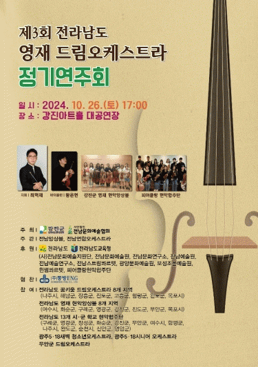 ’전라남도 영재 드림오케스트라‘는 광주광역시를 포함한 전라남도 19개 시·군을 대상으로 참여 인원을 선발하고 집중 육성하는 사업이다. 이번 정기공연에는 2024년 현재 대표 단원, 수료 후 전공 활동을 이어가는 선배들, 전남 제21회 전국음악콩쿠르 대상 수상자의 무대가 함께 펼쳐져 더욱 풍성한 문화 향유의 장이 될 것으로 보인다.