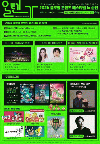 오는 11월 1일부터 3일간 개최되는 ‘글로벌 콘텐츠 페스티벌 in 순천(All Content Garden, 올텐가)’이다.
