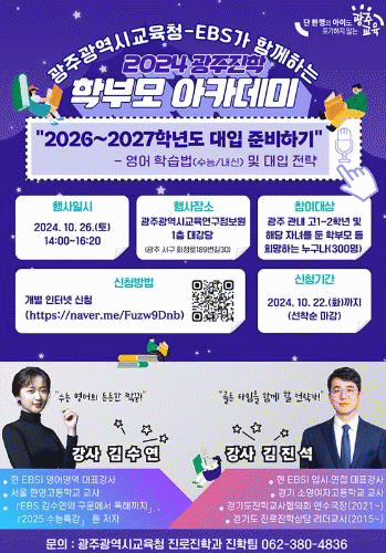 한편 시교육청은 오는 12월 7일 중학교 3학년 학생과 학부모를 대상으로 올해 마지막 광주진학 학부모 아카데미를 개최한다.