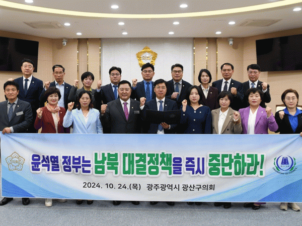 광산구의회는 성명서를 통해 “현재 대북전단과 오물풍선 등으로 남북 간 긴장감이 고조된 가운데 최근 북한 평양에서 무인기 잔해가 발견됐던 사건으로 군사 충돌 위험에 처해있다”고 밝혔다.