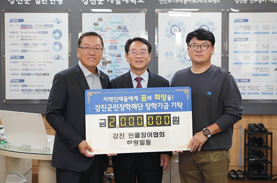 강진원 강진군민장학재단 이사장은 “지역 인재 양성을 위한 따뜻한 정성에 진심으로 감사드린다”며 “기탁해주신 장학금은 지역 학생들이 대한민국의 주역으로 성장하는 데에 밑거름이 될 수 있도록 소중히 사용하겠다”고 밝혔다.