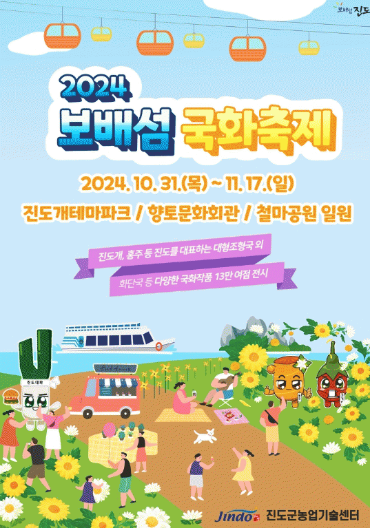 또한, 국화축제 기간에는 진도군 민속문화예술축제와 녹진 코스모스 길, 진도개테마파크 관람도 가능하다.