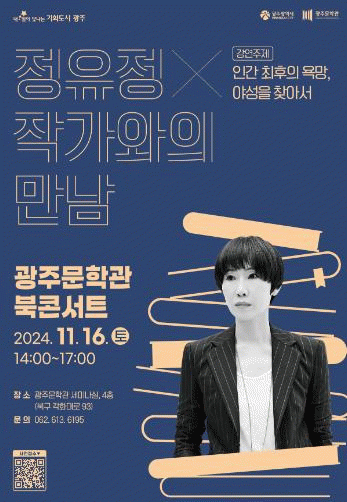 유정아 문화도시조성과장은 “광주와 인연이 깊은 정유정 작가를 초청해 책으로는 접하지 못한 생생한 이야기를 들을 수 있는 소통의 장을 마련했다”며 “시민 여러분의 많은 관심과 참여를 바란다”고 말했다.