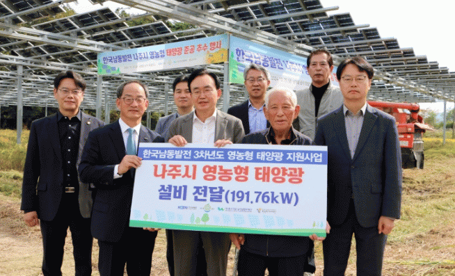 나주시 제1호 영농형 태양광 사업은 한국남동발전에서 ESG경영 실천의 일환으로 출연해 추진해왔다. 태양광 설비는 대·중소기업·농어업협력재단의 농어촌상생협력기금으로 관리하며 한국에너지재단에서 설비 시공 및 운영을 맡는다.