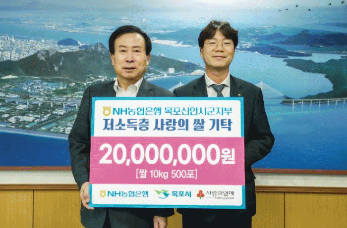 한편, NH농협은행 목포신안시군지부는 올해 1월에도 NH농협은행의 지원을 받아 마련된 사랑의 밥차 신규 차량에 대한 운영 지원금으로 2천만원을 기탁한 바 있다.