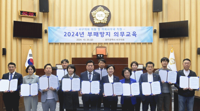 전승일 의장은 “이번 교육을 통해 청렴에 대한 바람직한 인식을 확립하는 계기가 되길 바란다”고 밝히며, “앞으로도 깨끗하고 투명한 의정활동으로 주민들에게 다가가는 서구의회가 되겠다”고 말했다.
