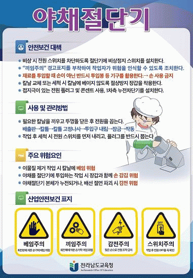 안전보건 대책, 기구 사용 및 관리 방법, 위험 요인 파악 등을 담은 안전수칙 포스터는 근로자가 쉽게 볼 수 있는 시설과 장소에 게시하도록 했다.