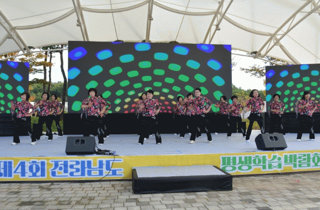 10월 26일 오전 전남 평생학습동아리 14팀이 빛가람 호수공원 특설무대에서 다채로운 무대를 준비한 가운데 사또골라인댄스팀 17명은 무대에 올라 버스킹 공연을 통해 그동안 갈고 닦은 실력을 마음껏 뽐냈다.
