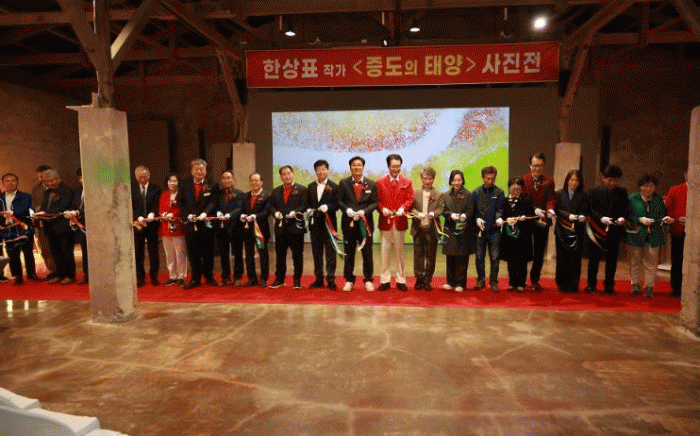 이번 전시는 '증도의 태양'이란 주제로 하늘에서 바라본 증도(병풍도)의 아름답고 신비로운 풍광을 한상표 작가의 섬세한 감성을 담아 드론으로 포착한 대표적 사진 작품 25여 점을 11월 17일까지 전시한다.