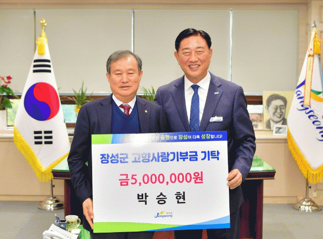박승현 회장은 “고향 사랑을 실천할 수 있어 기쁘다”며 “앞으로도 장성에 지속적인 관심을 갖고, 고향 발전에 힘을 보태겠다”고 전했다.
