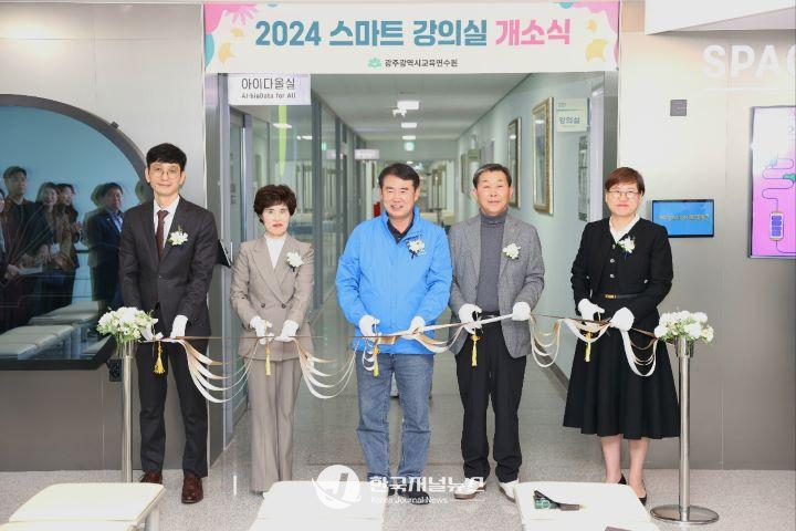 광주교육연수원은 31일 이정선 교육감, 김나윤·조석호 시의원, 학교·지역사회 관계자 등 50여 명이 참석한 가운데 ‘AI 스마트 강의실’ 개소식을 개최했다.
